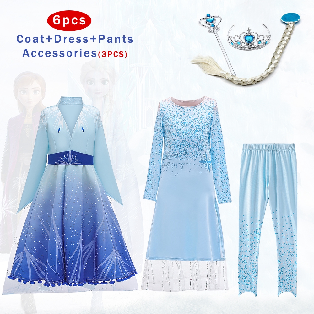 2 ANNA ELSA Trang Phục Trang Phục Trẻ Em Quần Áo Mùa Hè Cho Bé Gái